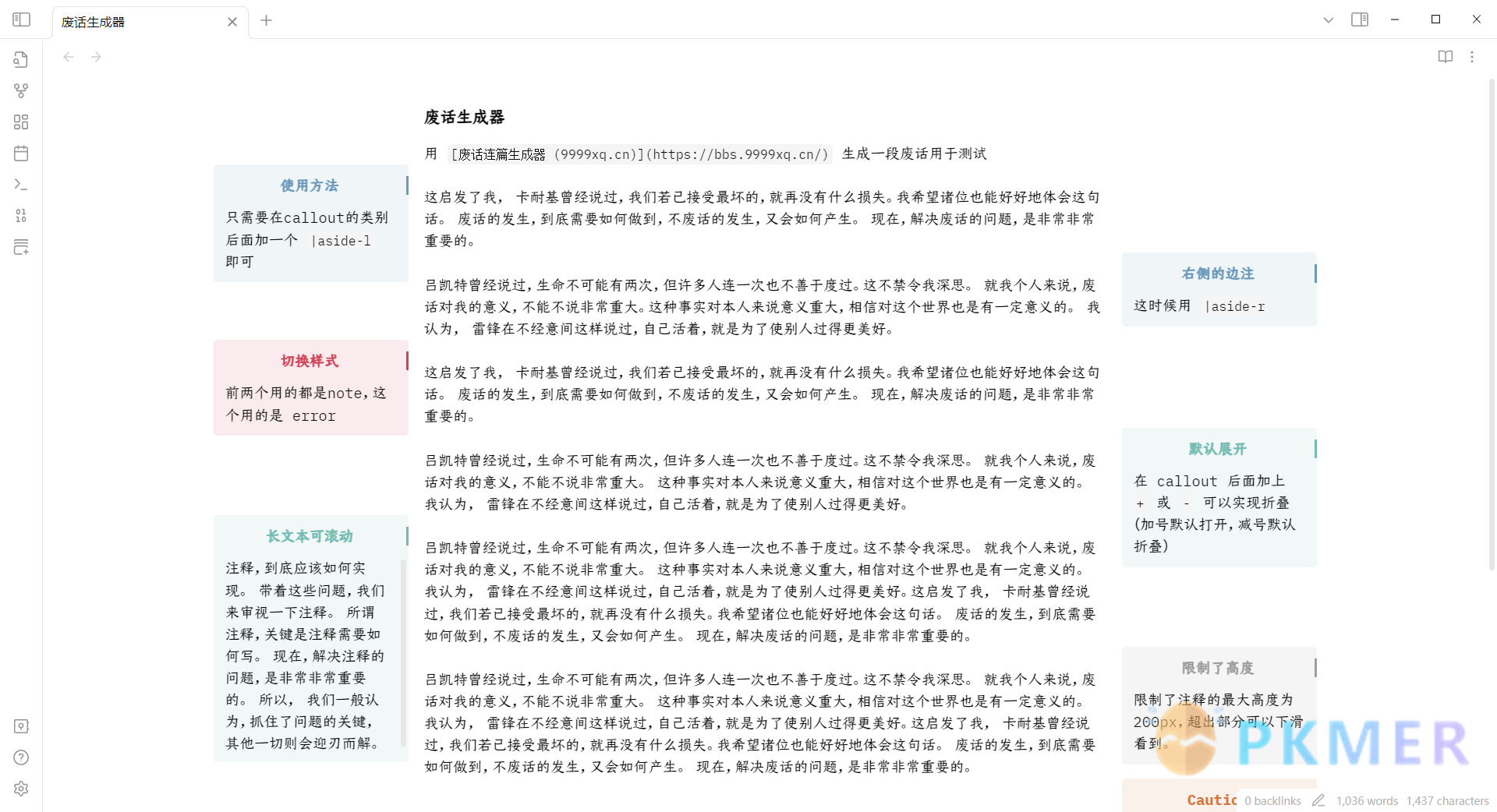 添加好 css 后,在正文中直接用边注的 callout 即可(如何添加 css 可以看这篇:Obsidian的CSS代码片段)