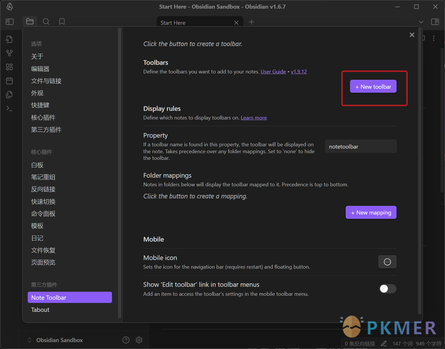 也可以前往 Github 仓库手动下载安装:chrisgurney/obsidian-note-toolbar