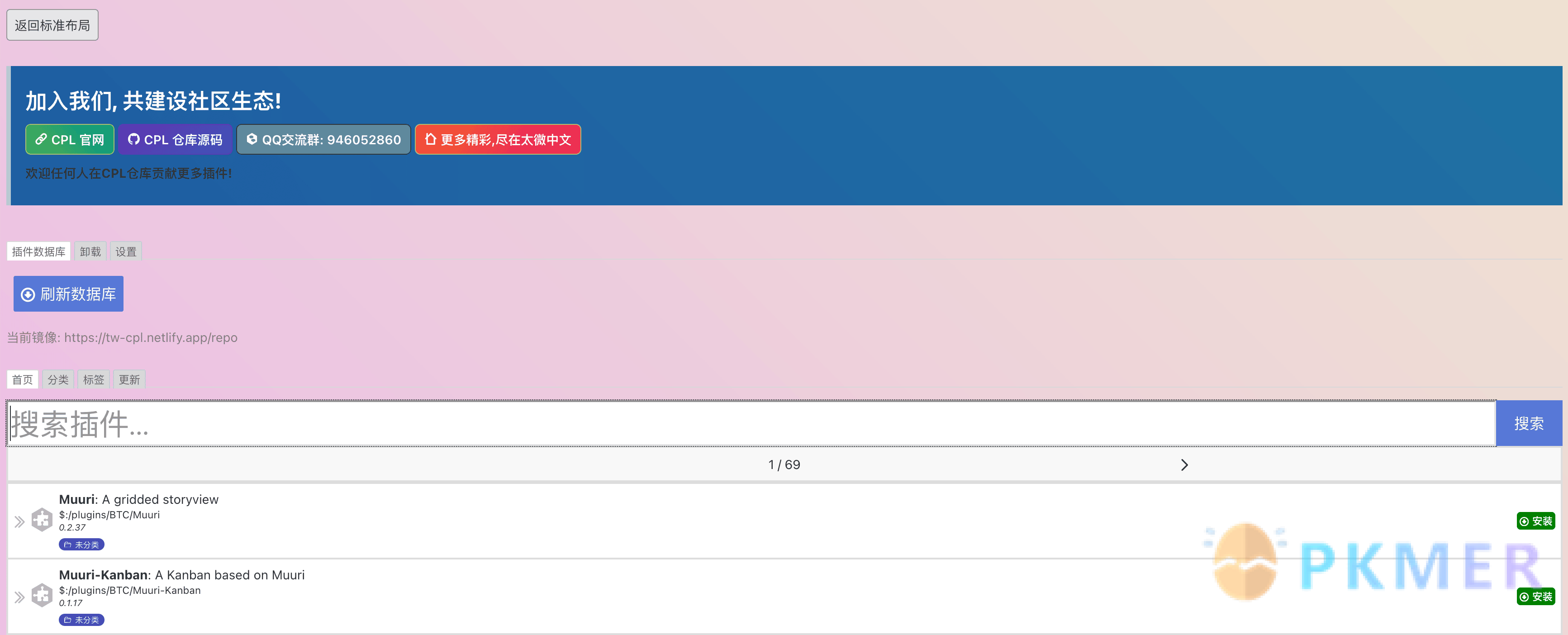 此外,在太微的「控制台(控制面板) - 插件 - 获取更多插件」里面也有 CPL 安装插件的入口,但这一方法已经不再维护,用的人少,可能会失效,截图如下: