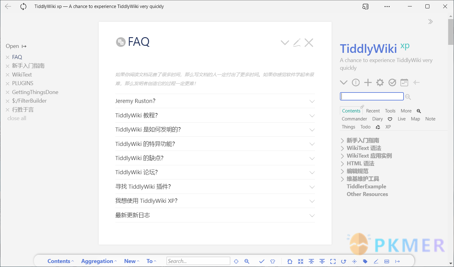 - TiddlyWiki Xp(快速体验 TiddlyWiki)